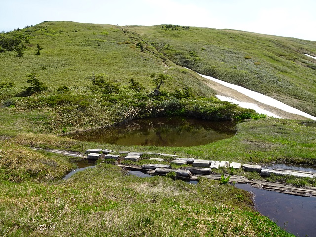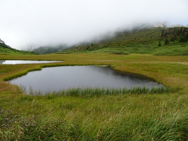 高谷池ヒュッテから天狗の庭までは、解放感のある湿原の中の気持ち良い木道歩きが続きます。