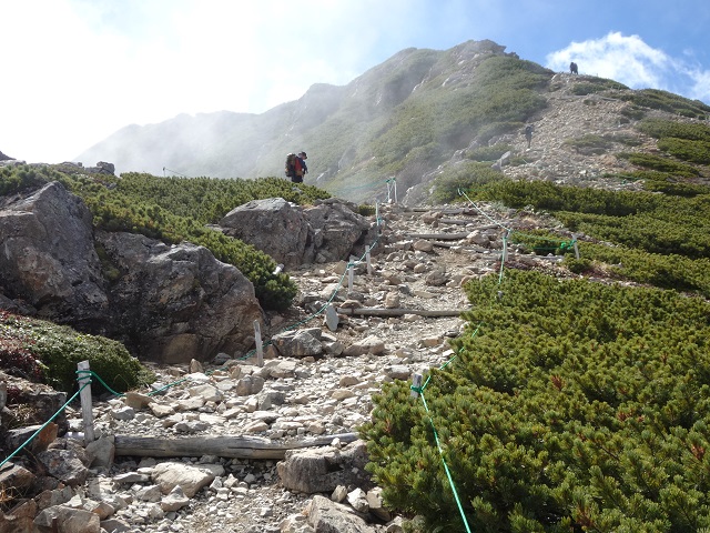 別山以降、多少のアップダウンはあったものの楽して歩いてきましたが、遠くから見えたこの登りが憂鬱でした。