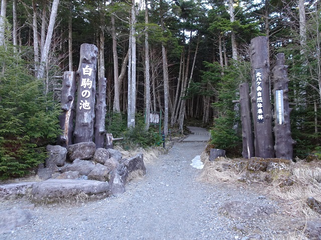 メルヘン街道の白駒池入口駐車場に朝6時に到着。