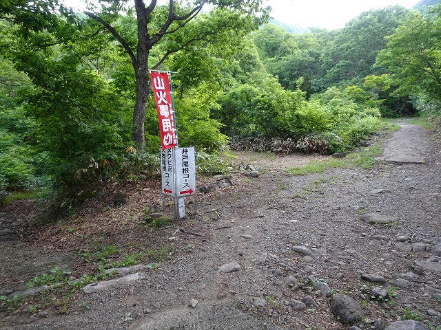 朝6時前に登山口の「本沢温泉登山口」に到着すると、駐車場はまだまだ余裕。